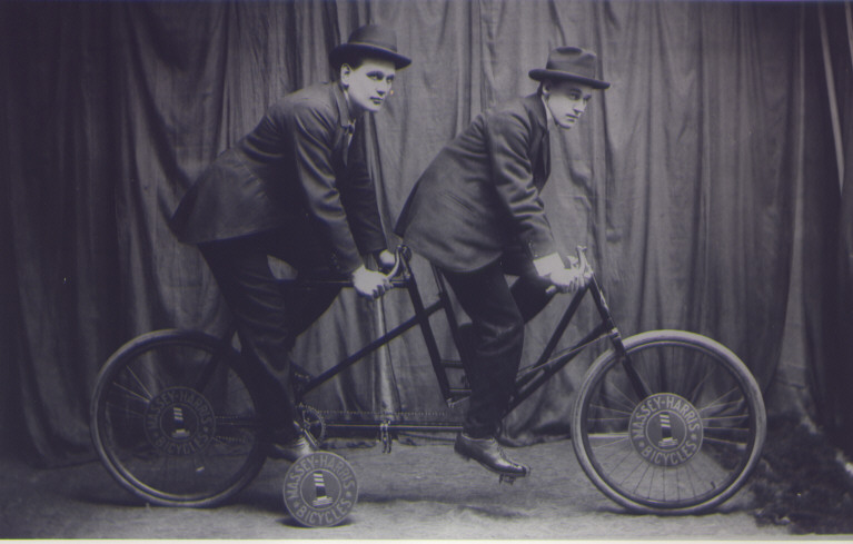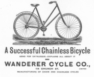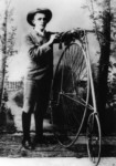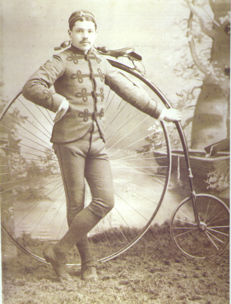 Sam McLaughlin with his Eagle - circa 1889. The McLaughlin Carriage Co was one of Canada's leading carriage makers - but Sam wanted to dabble with cars so he teamed up with Buick to make McLaughlin Buick for the Canadian market. GM eventually bought him out and he became President of GM Canada. He became very wealthy - gave up bicycles for cars, was a major philanthropist, and lived to become 100 years old - which proves that riding an Eagle must be good for you.