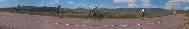 The pictures on this page were taken in early June, 2001 when Steve Stevens and Paul Brekus participated in the "Wheels Of Thunder" bicycle race. They checked out the course with other modern bicyclists to see if it would be suitable for the Wheelmen's games and races.