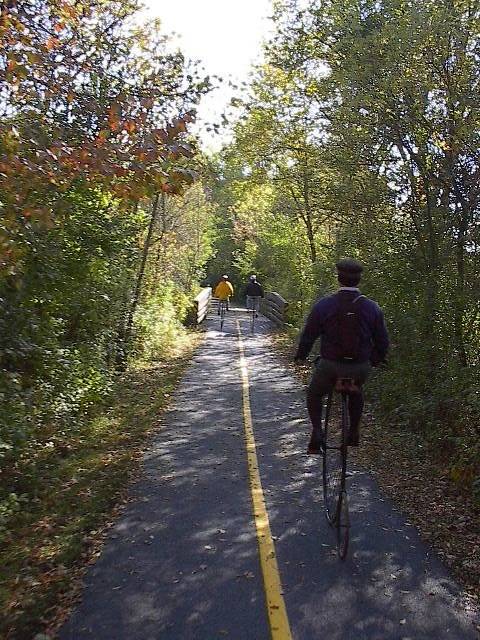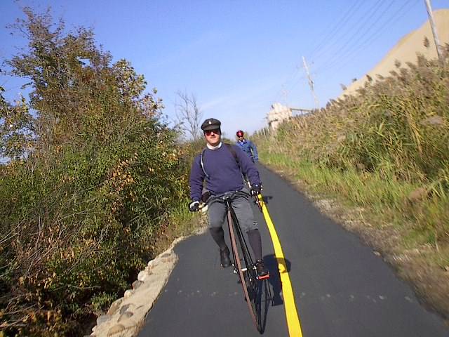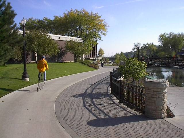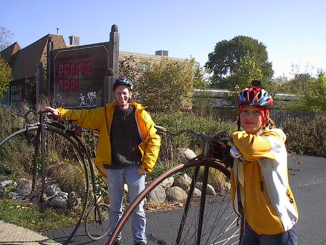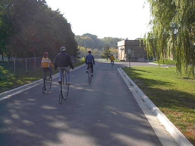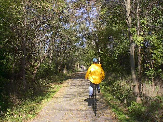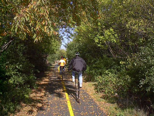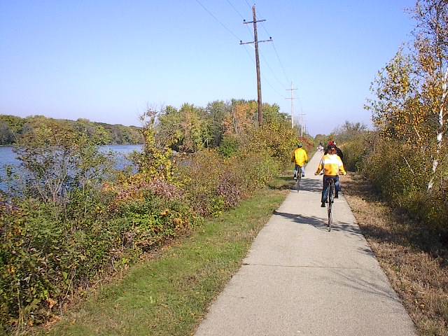 The trails vary from paved, to well groomed limestone. The series of trails we will be using are some of the most popular in the Chicago area, due to there scenic stretches along the Fox River, miles of tree covered riding and prairie flat terrain, punctuated with very few grades (hills to some, bumps to others, snow will not be found on any of the peaks, in fact I don't think you'll find any peaks). This is Illinois! Marbles have a hard time deciding which way to roll in the street.